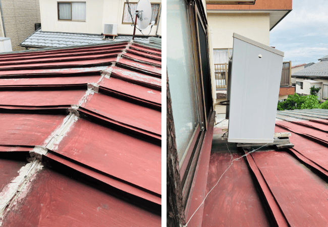 年季の入った屋根に設置された室外機 安全面には注意が必要
