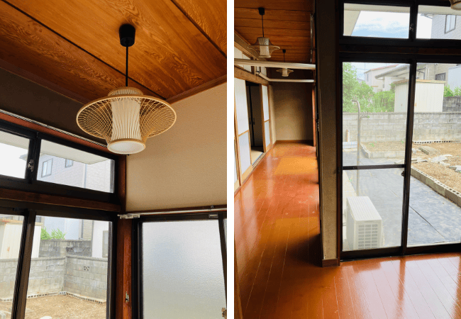 印象的だったのは広縁の照明。和風でありながら洒落たデザインで、この場所がきっと住まい手のお気に入りだったことが伝わってきます。