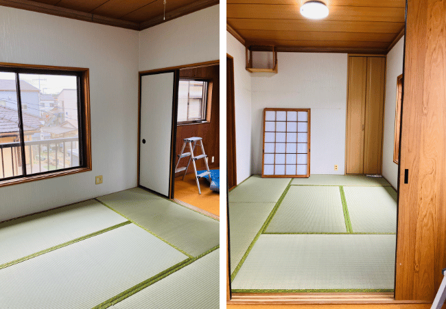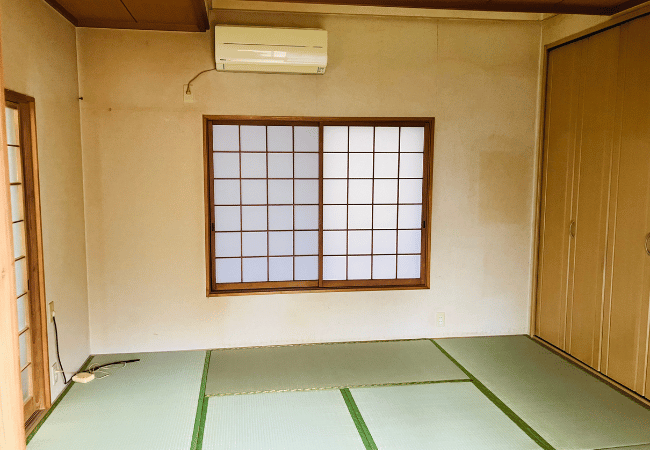 畳は張り替えられており、引き戸は中央がガラス張りの木製引き戸です。