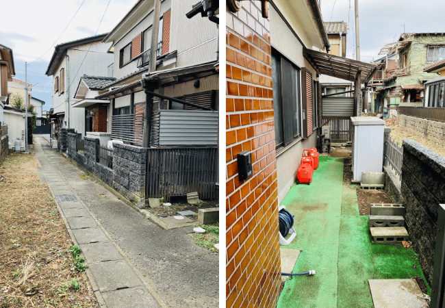 地図上では道があるはずなのに、「この先に本当に家があるのだろうか」と感じるほど狭い路地です。