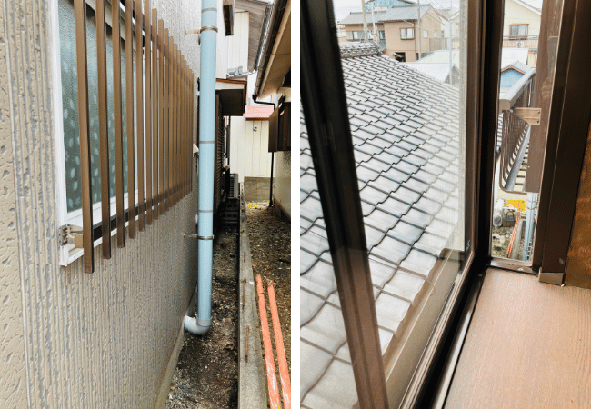 家と家の距離は非常に近く、二階の窓からは隣家の屋根や窓がすぐそばに見えます。