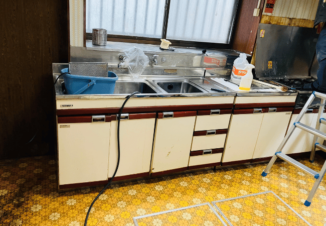ダイニングキッチンでは、ハウスクリーニング業者さんが換気扇の清掃作業をしていました。