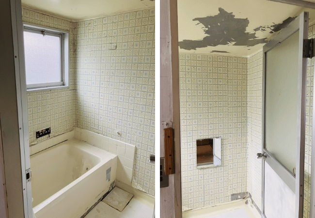 剥がれた浴室の天井。