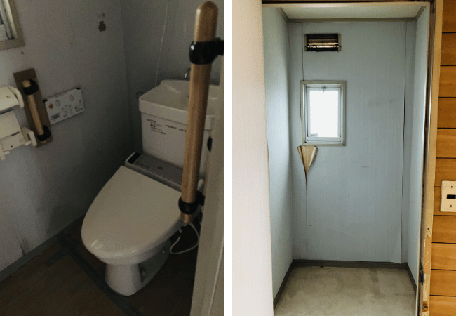 さらに、かつてトイレだったと思われる空間があり、現在は便器が撤去され空っぽの状態でした。