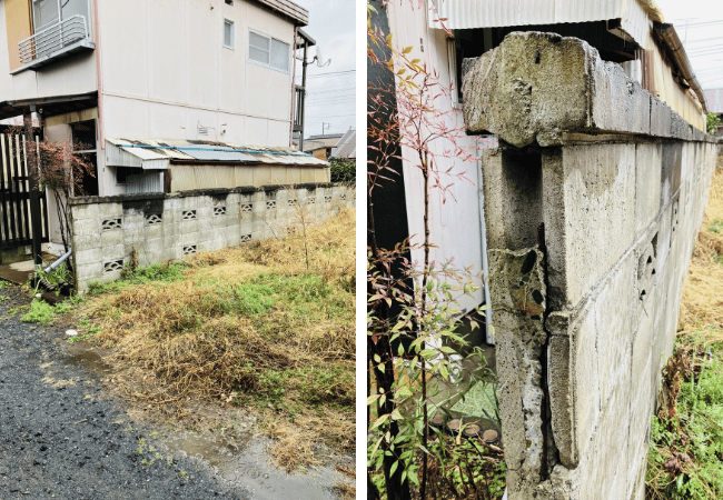 ブロック塀の鉄筋を見たとき、「放置すれば危険だ」と思いました。