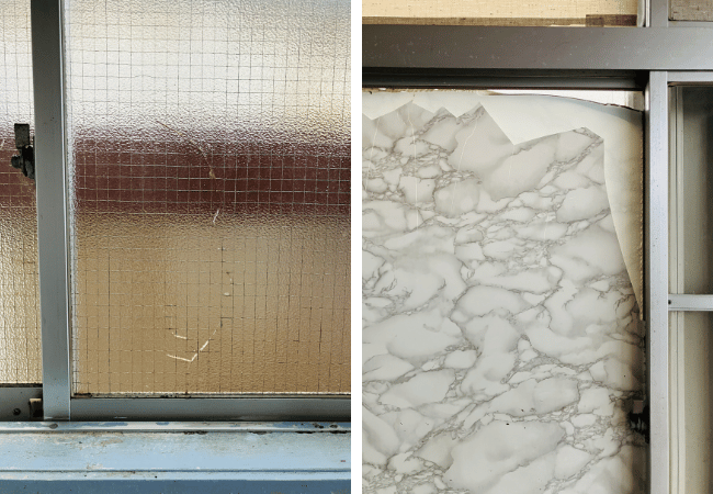 キッチンの窓にはひびが入っていました。