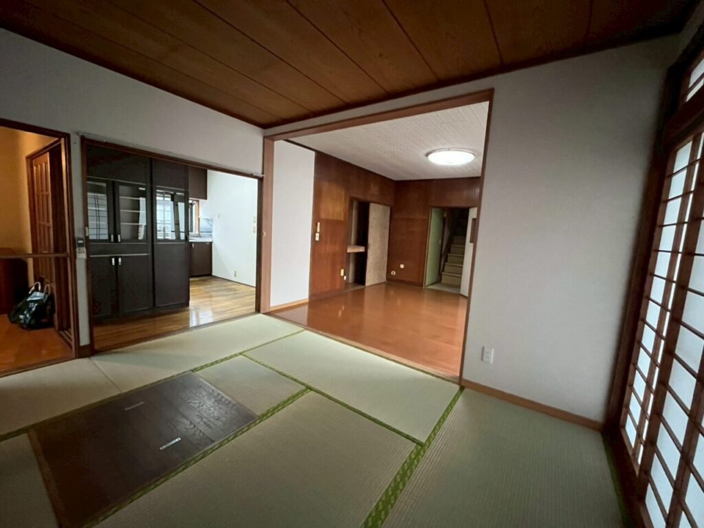 たくさんの図書や伝統芸術品が置かれている縁側のある素敵なお家。水戸駅20分圏内の利便性の高い立地で、リフォーム前から入居したいというお問合せを複数いただいております。 庭木が生い茂っているため、伐採し、駐車場として活用いたしました。また、壁紙の剥がれ・汚れがひどかったので新しい壁紙を貼りました。とてもスッキリしてキレイになりました!